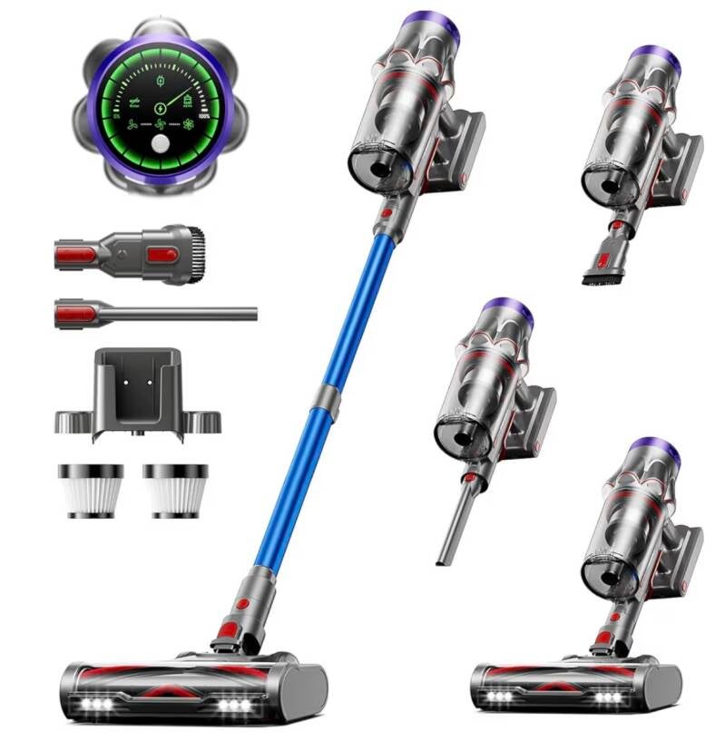 Esta aspiradora inalámbrica combina potencia, ligereza y versatilidad para mantener tu hogar impecable sin esfuerzo. Su diseño 6 en 1 permite limpiar pisos, alfombras, esquinas, muebles y hasta tu auto. Con pantalla inteligente, múltiples accesorios y luz LED frontal, obtienes una limpieza profunda en cada rincón.