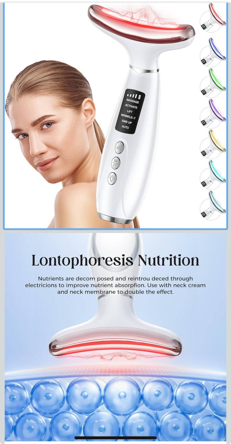 Masajeador Facial y de Cuello con Luz LED – Lifting, Antiedad y Terapia EMS | Reafirma, Reduce Arrugas y Mejora la Absorción de Cremas